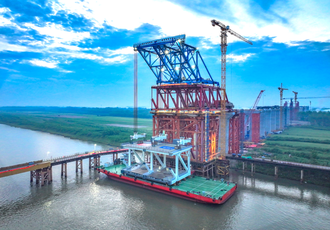 5月14日,隨著鋼桁梁的提升、落位、安裝,由集團(tuán)建設(shè)的池州長(zhǎng)江公鐵大橋成功吊裝全橋首節(jié)鋼桁梁,標(biāo)志著該項(xiàng)目正式步入主橋上部結(jié)構(gòu)鋼梁施工階段。