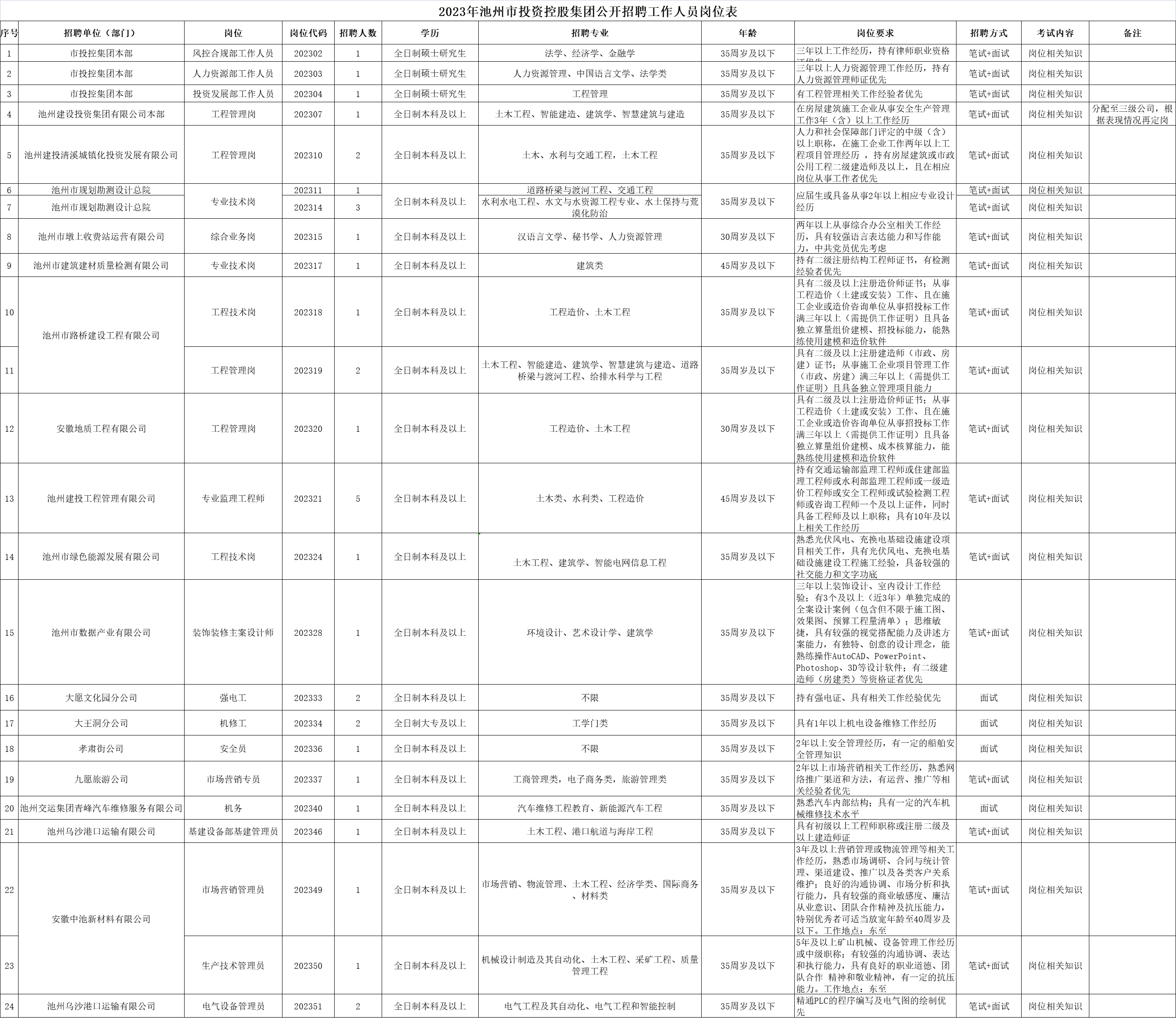 2023年池州市投資控股集團公開招聘報名工作即將結束,截止2023年9月15日20:00,共有24個職位35個計劃招聘數(shù)暫時無人報考或達不到開考比例,如2023年9月17日24:00報名時間截止前仍達不到開考比例,將核減或取消該崗位招聘計劃。有意向報名人員請登陸池州人事考試網(wǎng)(http://rskszx.czsrsj.chizhou.gov.cn)報名,審核未通過人員可改報其他符合條件崗位。