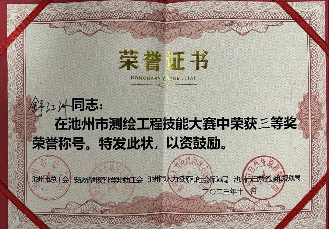 日前,池州市首屆測繪工程技能大賽圓滿落幕,全市22家測繪單位的15支隊伍以及20余名個人賽選手參加。最終,集團所屬池州市規(guī)劃勘測設(shè)計總院有限公司在此次技能大賽獲得團體總成績第一、個人成績第一的佳績。