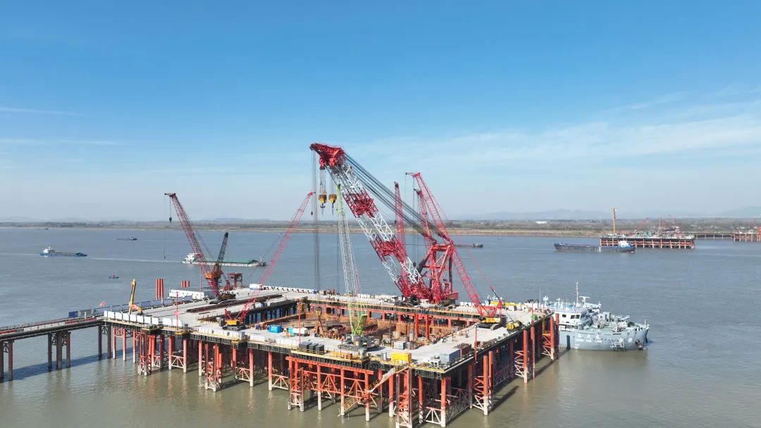 12月26日下午,在長(zhǎng)江池州段離南岸大堤約380米處的江中施工點(diǎn),隨著池州長(zhǎng)江公鐵大橋4號(hào)墩圍堰內(nèi)最后一方封底混凝土的灌入,由集團(tuán)承建的池州長(zhǎng)江公鐵大橋4號(hào)主墩圍堰封底順利完成,標(biāo)志著池州長(zhǎng)江公鐵大橋即將進(jìn)入主墩承臺(tái)施工階段,為池州長(zhǎng)江公鐵大橋主塔施工打下堅(jiān)實(shí)基礎(chǔ)。