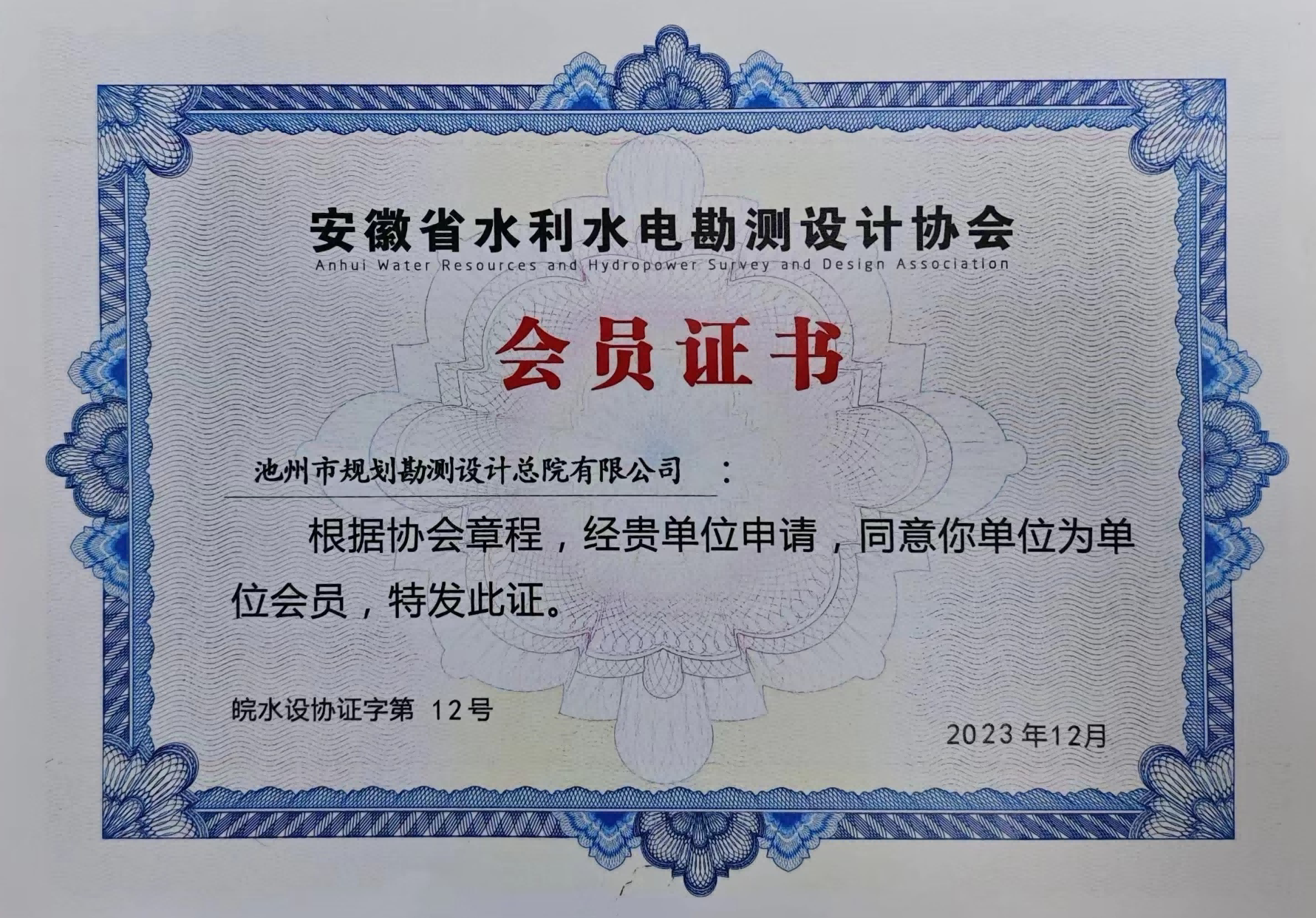 2023年12月27日,安徽省水利水電勘測(cè)設(shè)計(jì)協(xié)會(huì)第三屆會(huì)員大會(huì)在合肥召開,省民政廳、省水利廳、中國水利水電勘測(cè)設(shè)計(jì)協(xié)會(huì)等單位領(lǐng)導(dǎo)蒞臨指導(dǎo),全省40多家會(huì)員單位代表參加。會(huì)議選舉產(chǎn)生了新一屆協(xié)會(huì)理事、監(jiān)事單位,池州市規(guī)劃勘測(cè)設(shè)計(jì)總院有限公司新當(dāng)選為第三屆理事會(huì)理事單位,總院黨支部副書記、副總經(jīng)理左江同志當(dāng)選為第三屆理事會(huì)理事。
