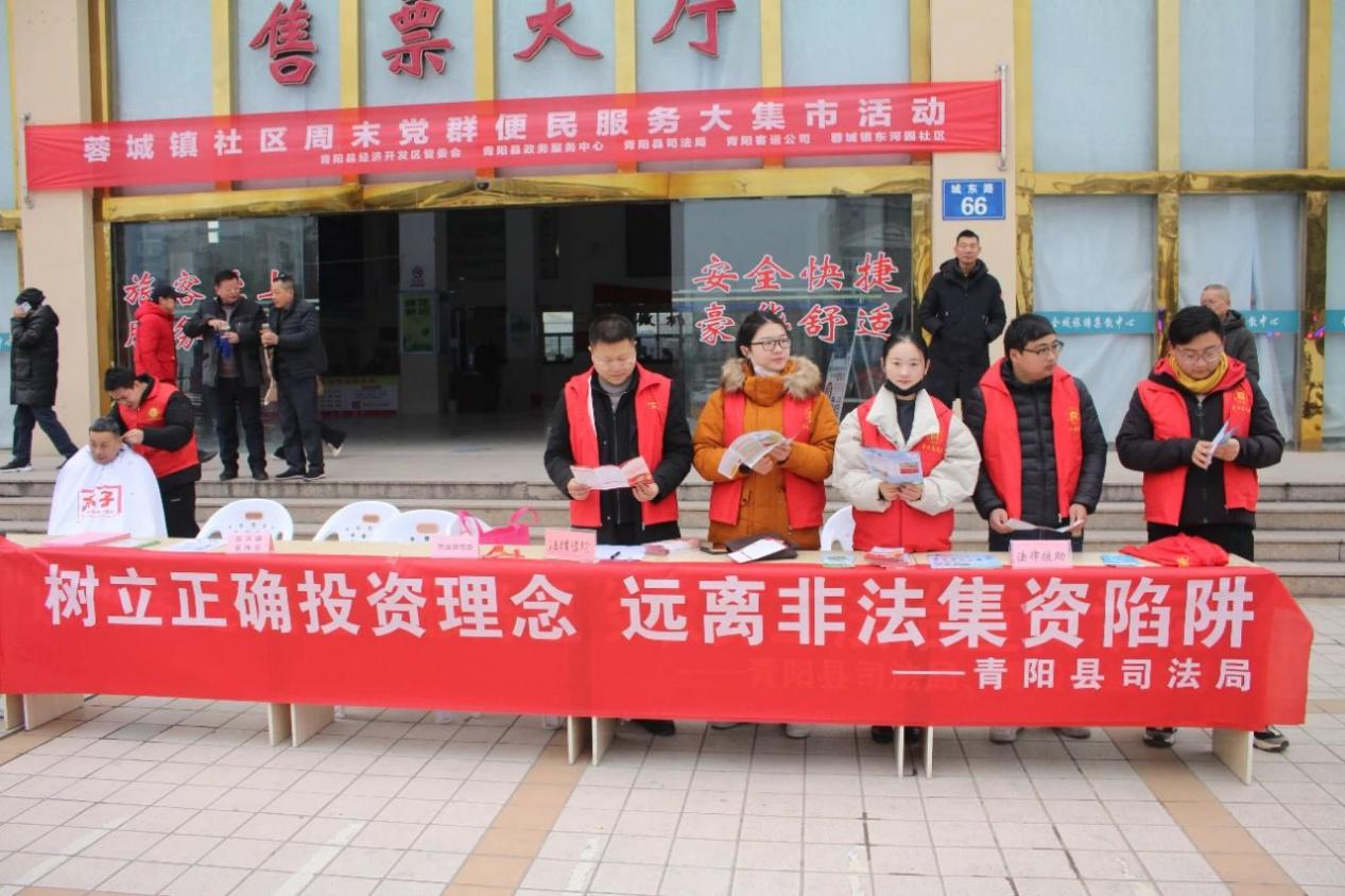 臨近年底,返鄉(xiāng)人員逐漸增多,為幫助群眾及返鄉(xiāng)人員擦亮眼睛,精準識別各類投資陷阱,1月26日池州交運集團青陽客運公司、青陽縣司法局聯(lián)合在站前廣場上開展預防非法集資法治宣傳活動。